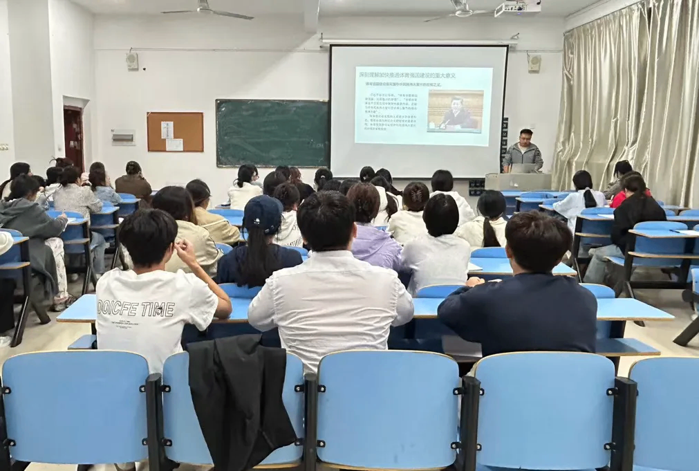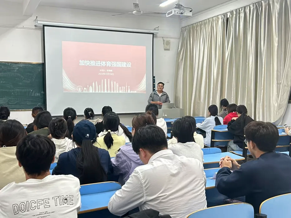 2025年10月19日晚,国际与教育学院于国教楼3306教室开展了一场以“加快推进体育强国建设”为主题的党课学习活动。此次党课由国际与教育学院党支部书记钟秉峰主讲,学生党员、发展对象以及入党积极分子参与,共同深入学习体育强国建设的重要意义。