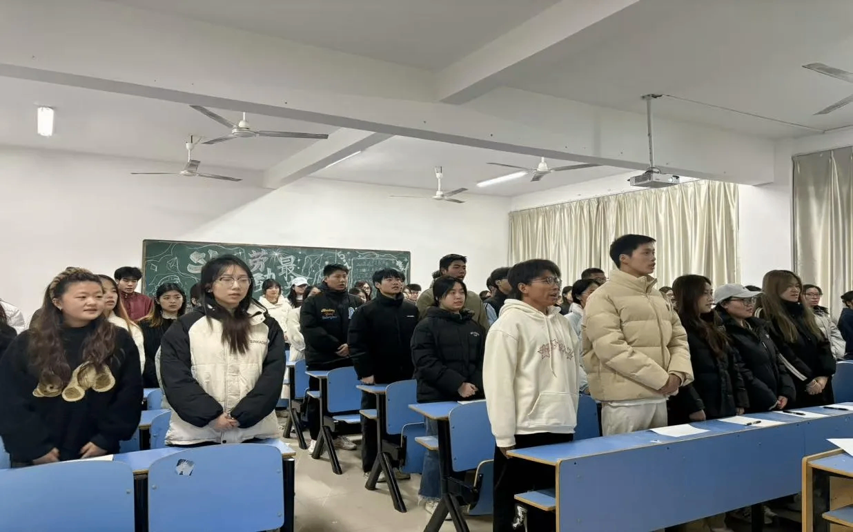 报告尾声,在胡正晨的带领下,全体同学庄严宣誓:“青春向党,奋斗有我!请党放心,强国有我!” 激昂的誓言响彻全场,随后大家共同唱响《没有共产党就没有新中国》,熟悉的旋律引发强烈共鸣,将现场气氛推向高潮。