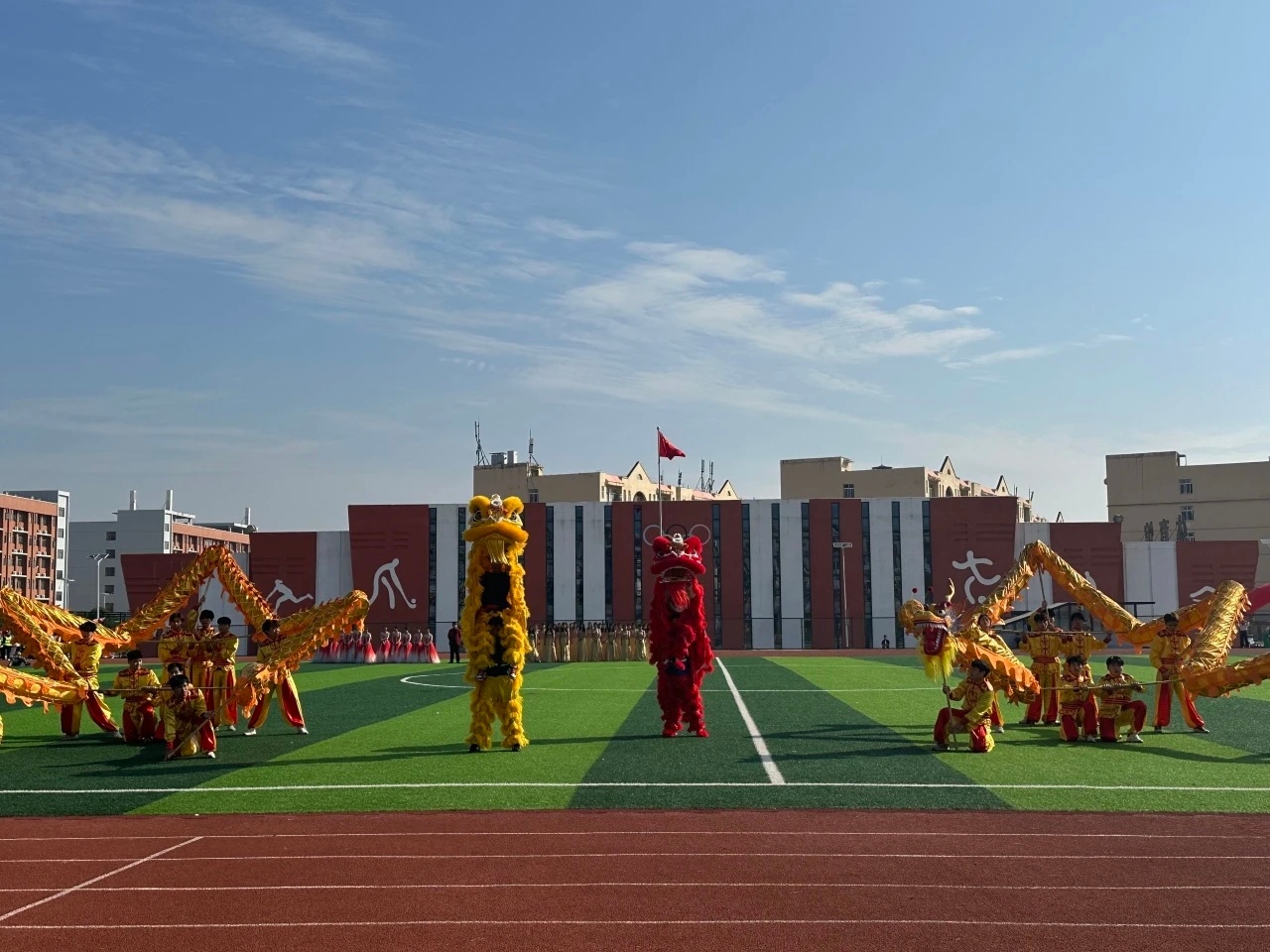 方阵退场后,国际与教育学院的特色表演精彩亮相!学子们带来了精心编排的节目,动感的舞蹈搭配轻快的旋律,展现了青春的活力与创意;整齐划一的动作、饱满的精神状态,彰显了国教院学子的凝聚力与表现力。表演现场掌声不断、喝彩连连,为开幕式增添了浓墨重彩的一笔,也让大家感受到了国教院独特的文化魅力。
